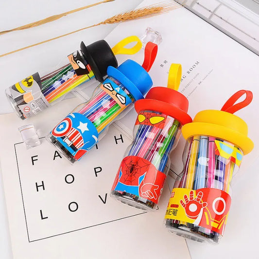 Arjoos | 💖 Superhero Color Marker Pens 💖 Kids Children Coloring Stationary Pen 💖 12 Coloring Markers/ Set l Spiderman Transformer Batman Captain America l Children Day Gifts l Goodie Bag l Spiderman Birthday Party
