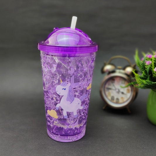 Arjoos | Double Wall Unicorn Bubble Re Usable Water Sipper Bottle for Kids | Unicorn Tumbler with Straw 450 ml | Unicorn Fancy Sipper with Light for Parties and Kids | Birthday Return Gifts For Kids - Set of 1 .
