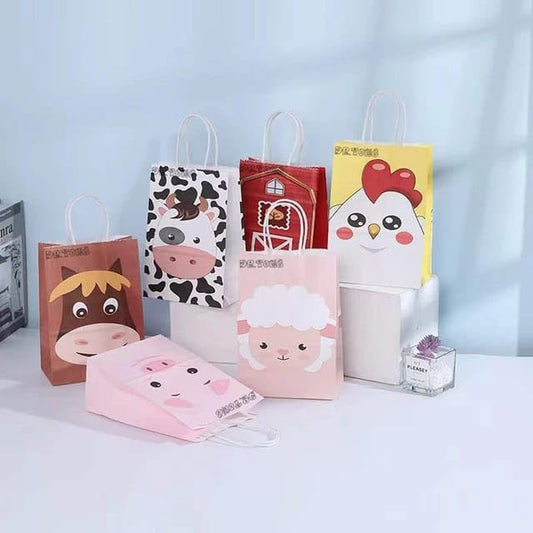 Arjoos | Farm theme Animal Design Printed Paper Carry Bags | Gift Bags for Return gifts(Pack Of 12)