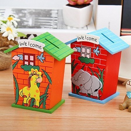 Arjoos | Piggy Bank for Kids Wood House Animal Designs, Multi Color Perfect Return Gift for Boys and Girls | Pack of 6 pcs