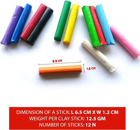 Arjoos | Skoodle Clay Star Scented Clay Pack, 12 Multicolor Clay Sticks + 4 Moulds + 1 Roller (150gm)
