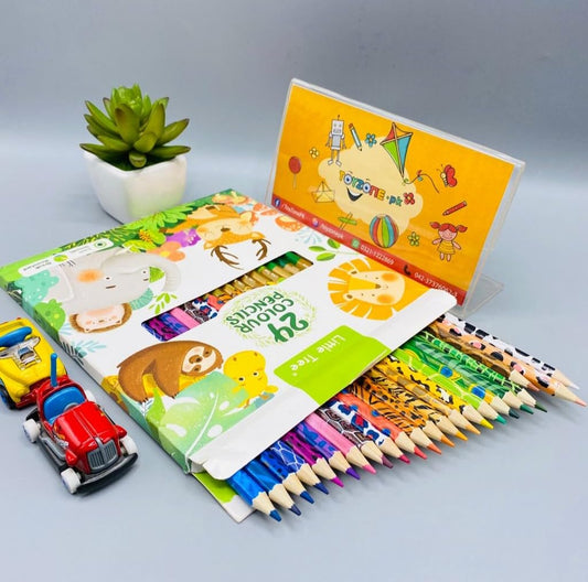 Arjoos | Set of 24 Colored Pencil Pre-Sharpened Pencils for Children | 24 animal print pencils