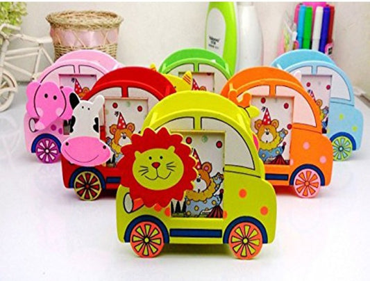 Arjoos | Wooden Car Shape Animal Design Pen Stand | Pen Stand with Photo Frame | Pen Stand to Decorate On The Table Top for Kids | Birthday Return Gift for Kids - ( Age 3+ ).