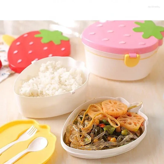 Arjoos\Strawberry Shape Lunch Box 4 Containers Lunch Box | Cute Lunch Box For Kids