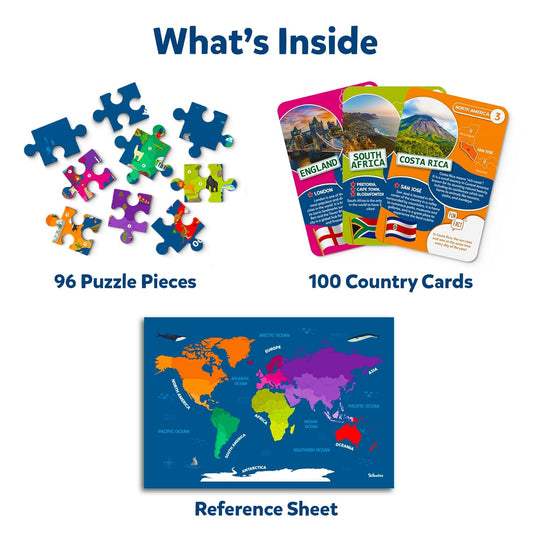 Arjoos | Skillmatics World Map Puzzle - 96 Piece Jigsaw Puzzle | Educational Toy, Geography for Kids | 400+ Facts | Gifts for Boys & Girls | Ages 6 to 12 years