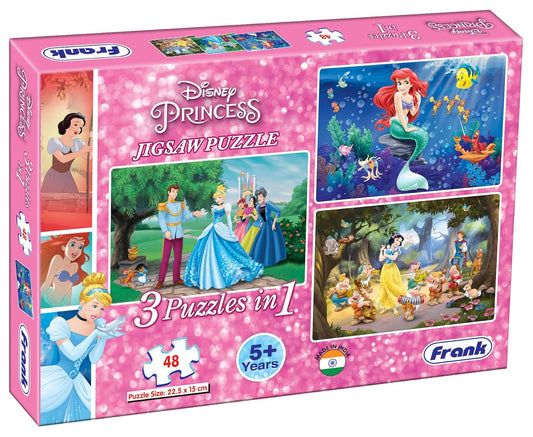 Arjoos | Frank Disney Princess (48 Pieces) 3 in 1 Jigsaw Puzzle for Kids Above 5+ Years - Fun & Challenging Brain Booster Games - for Focus and Memory | Both Boys and Girls