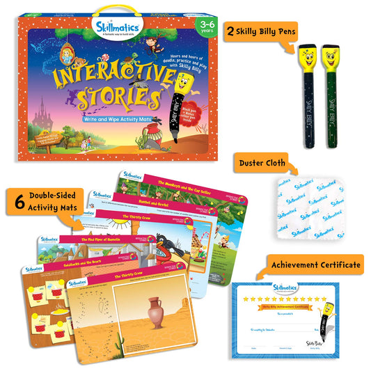 Arjoos | Skillmatics Educational Game-Interactive Stories | Reusable Activity Mats With 2 Dry Erase Markers | Gifts For Ages 3 To 6 | Multicolour | Both Boys and Girls