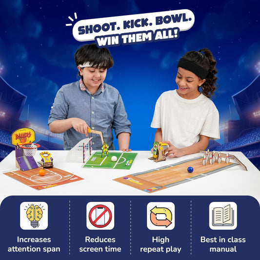 Arjoos | Smartivity Multi Sports Kit -(3 in 1 ) Sports Game | Basketball, Soccer, Bowling for Kids | DIY Science Toy for Kids | STEM Wooden Construction Game | Birthday Gifts for Boys & Girls - Ages ( 6 -14 yrs )