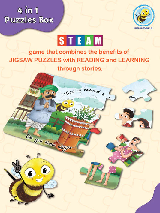 Arjoos | Educational Story-Based Puzzle Set | 4 Jigsaw Puzzles & 1 Activity Book on Benefits of Tulsi | Birthday Gifts for Kids - Pack of 1 - ( Age - 6+ )