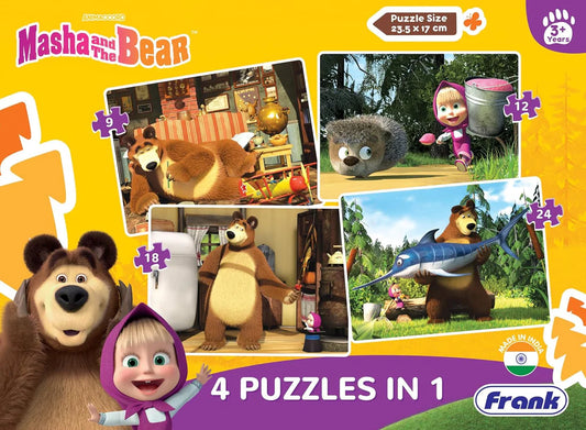 Arjoos | Masha and The Bear - A Set of 4 Jigsaw Puzzle for Kids Above 3+ Years - Fun & Challenging Brain Booster Games - for Focus and Memory | Both Boys and Girls