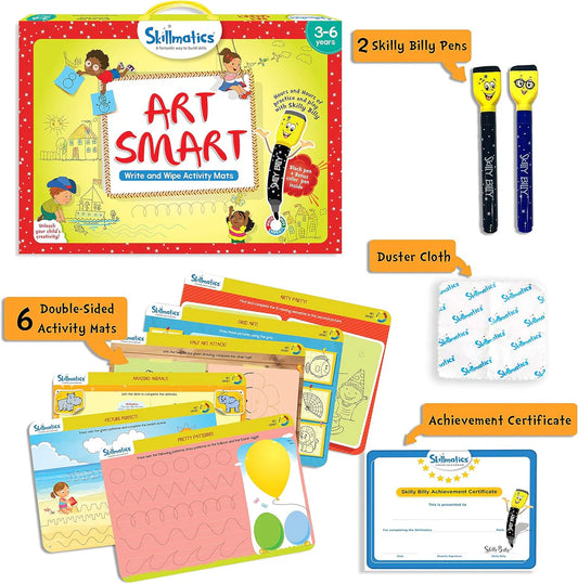 Arjoos | Art Smart - Write and Wipe Activity Mats | Sketching, Drawing, Creative, Art | Erasable and Reusable Mats (Multicolor) | Ages (3-6 Years)