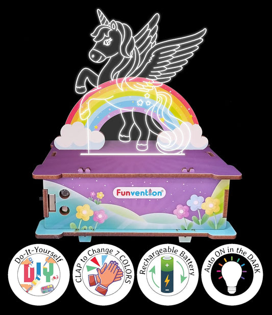 Arjoos | Fairytale Smart Lamp (Unicorn, Angle & Castle) | Sound & Light Controlled Lamp | STEM Learning DIY Utility Kit ( Clap to Change Colour & Auto ON in Dark) | Birthday Gifts for Kids | (Ages 8+)