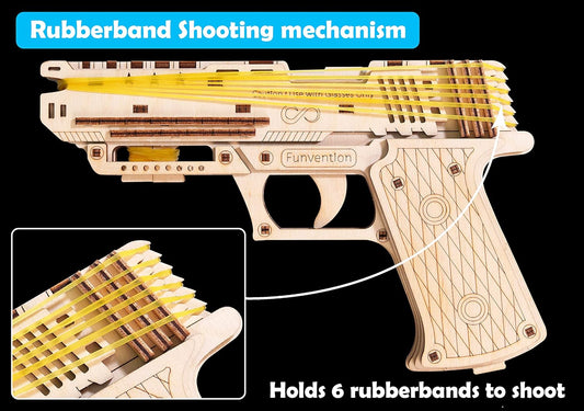 Arjoos | Handgun - DIY Functional Mechanical Model | I STEM 3D Puzzle Learning Kit | Collectible Building Kit with rubber band shooting & storage | Birthday Gifts for Kids | (Ages 8+)